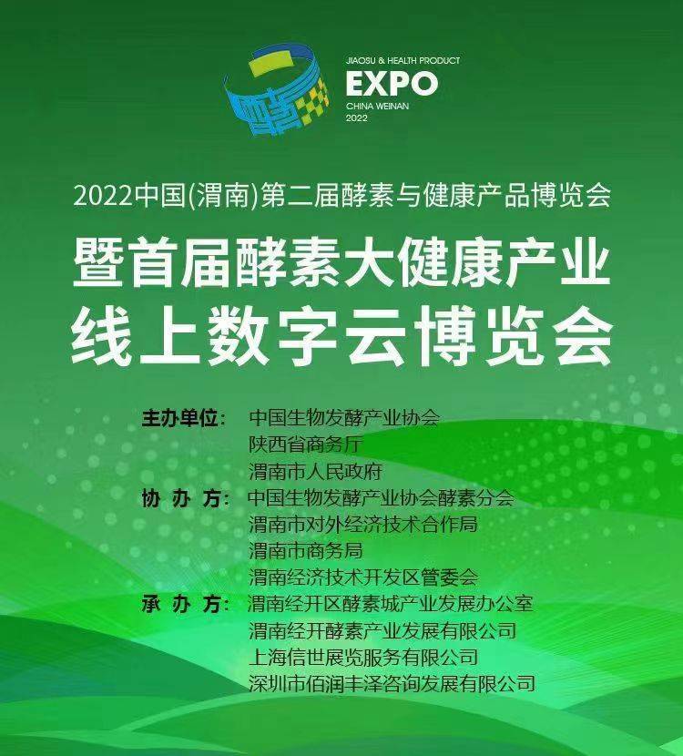 8月16日至18日,第二届酵素与健康产品博览会暨酵素大健康产业线上“数字云博览会”,将在陕西省渭南经开区中国酵素城核心区和中国酵素城官网同步举办。