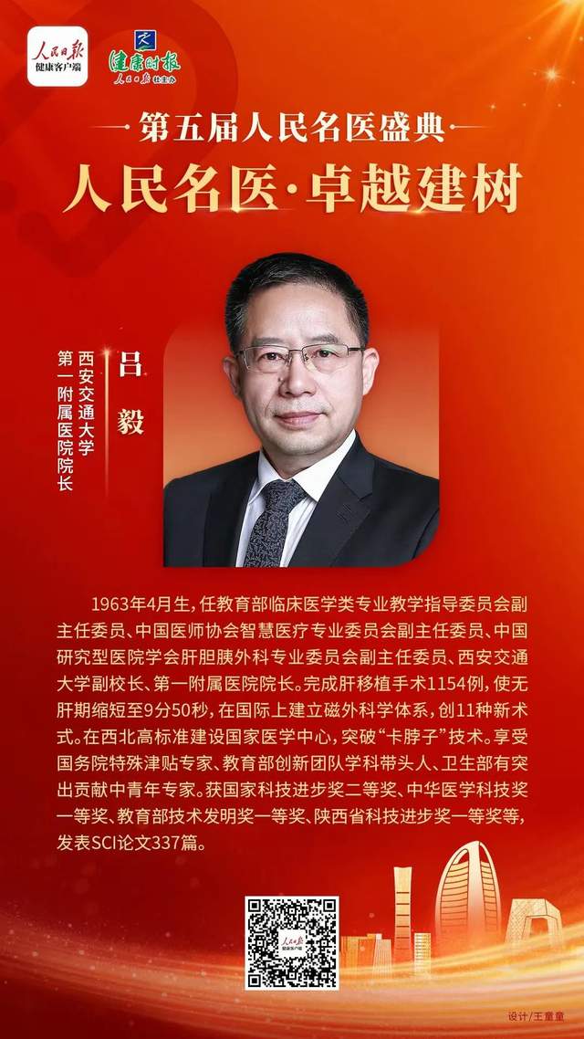 西安交大一附院院长吕毅入选“第五届人民名医·卓越建树”榜单