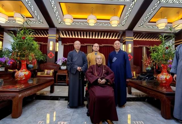 2024年4月25日,怀梵大和尚与江西妙安大和尚、内蒙古澄还大和尚、浙江传喜大和尚奔赴数千里,参访辽宁营口楞严寺圆山长老,接圆山长老之天台法脉,誓弘“天台宗"之正法。