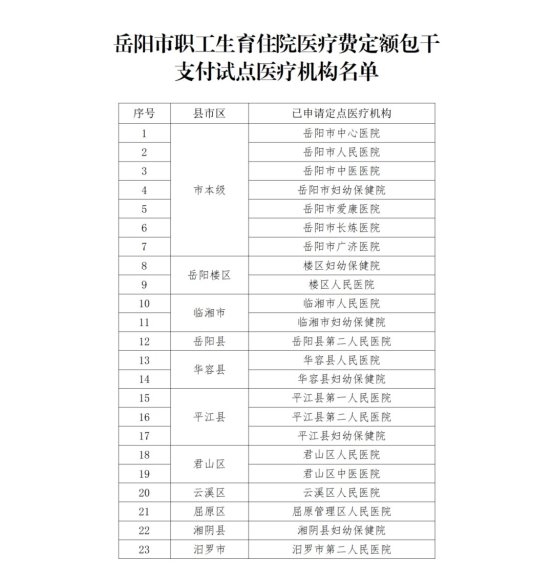 为降低生育成本、支持积极生育,日前,岳阳市医疗保障局发布《关于开展职工生育保险住院医疗费用定额包干支付试点工作的通知(试行)》,自9月1日起,在全市部分定点医疗机构开展职工生育保险住院费用包干支付试点工作,试行期两年。