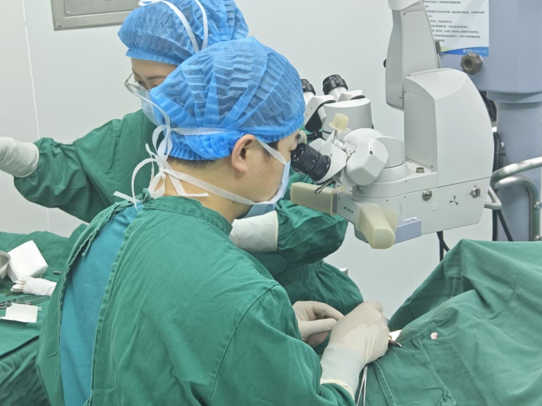 在完善术前检查及相关准备工作后,余新平教授为小宋量身定制了手术方案,并顺利为其实施了斜视矫正术。手术中,余教授为小宋进行了左眼外直肌后徙 6mm、左眼内直肌缩短 6mm 的操作,整个手术过程十分顺利,达到了预期效果。