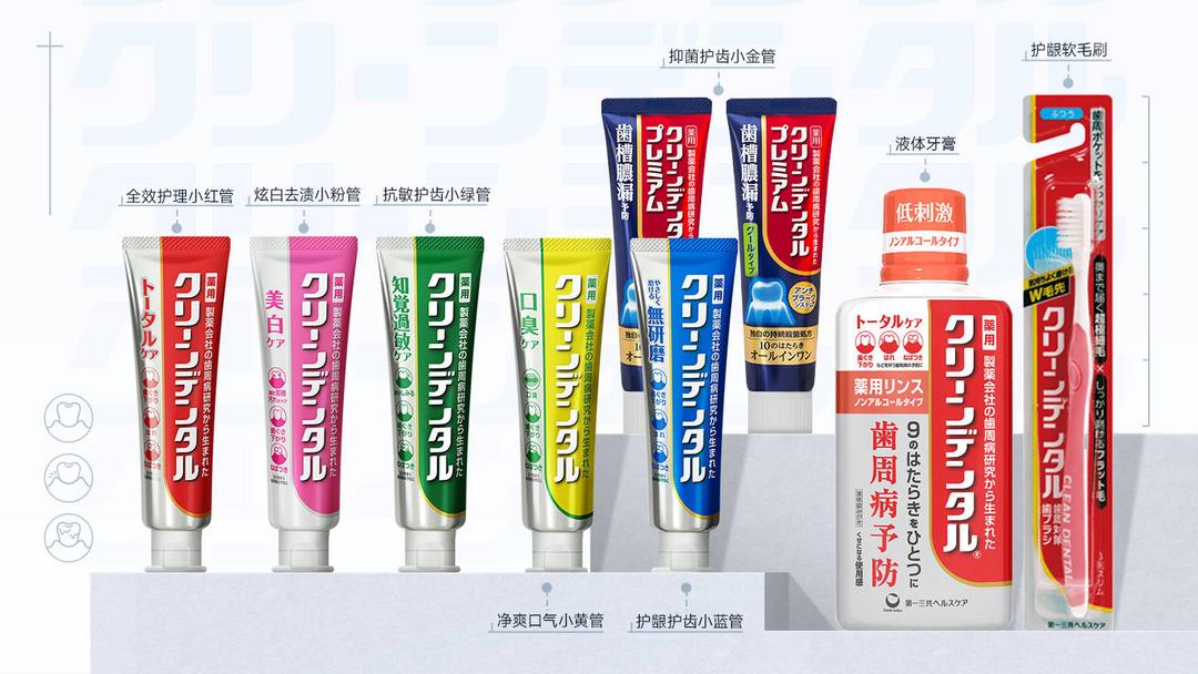 作为百年药企第一三共集团旗下的明星个护品牌,Clean Dental深耕牙周护理领域40年,凭借严谨的制药级研发标准赢得市场广泛认可。品牌在日本高端牙膏市场常年稳居销量领先地位,累计销售超8000万支,明星产品咸味全效小红管牙膏更是连续登顶天猫榜单,以高复购率和优质口碑收获中国消费者青睐。依托母公司120余年的医药研发底蕴,品牌打造了覆盖全年龄层的多种细分功效牙膏,从全效护理、牙齿美白到敏感修护、口气清新,精准匹配不同场景下的牙周护理需求,用专业实力守护千万家庭的口腔健康。