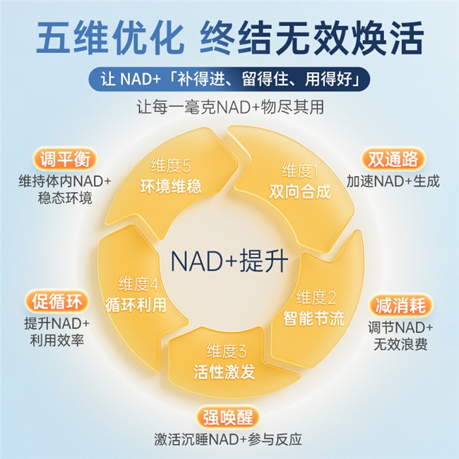 在今年的众多新品与升级产品中,赛立复NAD+ MAX 30000是表现最抢眼的一款,它不仅将含量做到碾压行业,更升级了吸收系统。它并非沿用传统NMN单一路径补充NAD+的方式,而是采用了更系统化的NAD+优化模型,形成了业内少见的“五维机制”,NADH与NR2大通路提升NAD+,激活、节流、循环3向提升NAD+吸收率。行内专家普遍认为,这类多通路协同的抗衰模型代表了NAD+补充剂的未来趋势。