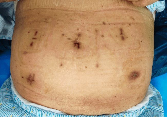 肿瘤已经侵犯深层组织,淋巴结也有转移,不手术,病情会快速恶化;但传统开腹手术创伤大,患者术后恢复风险太高。